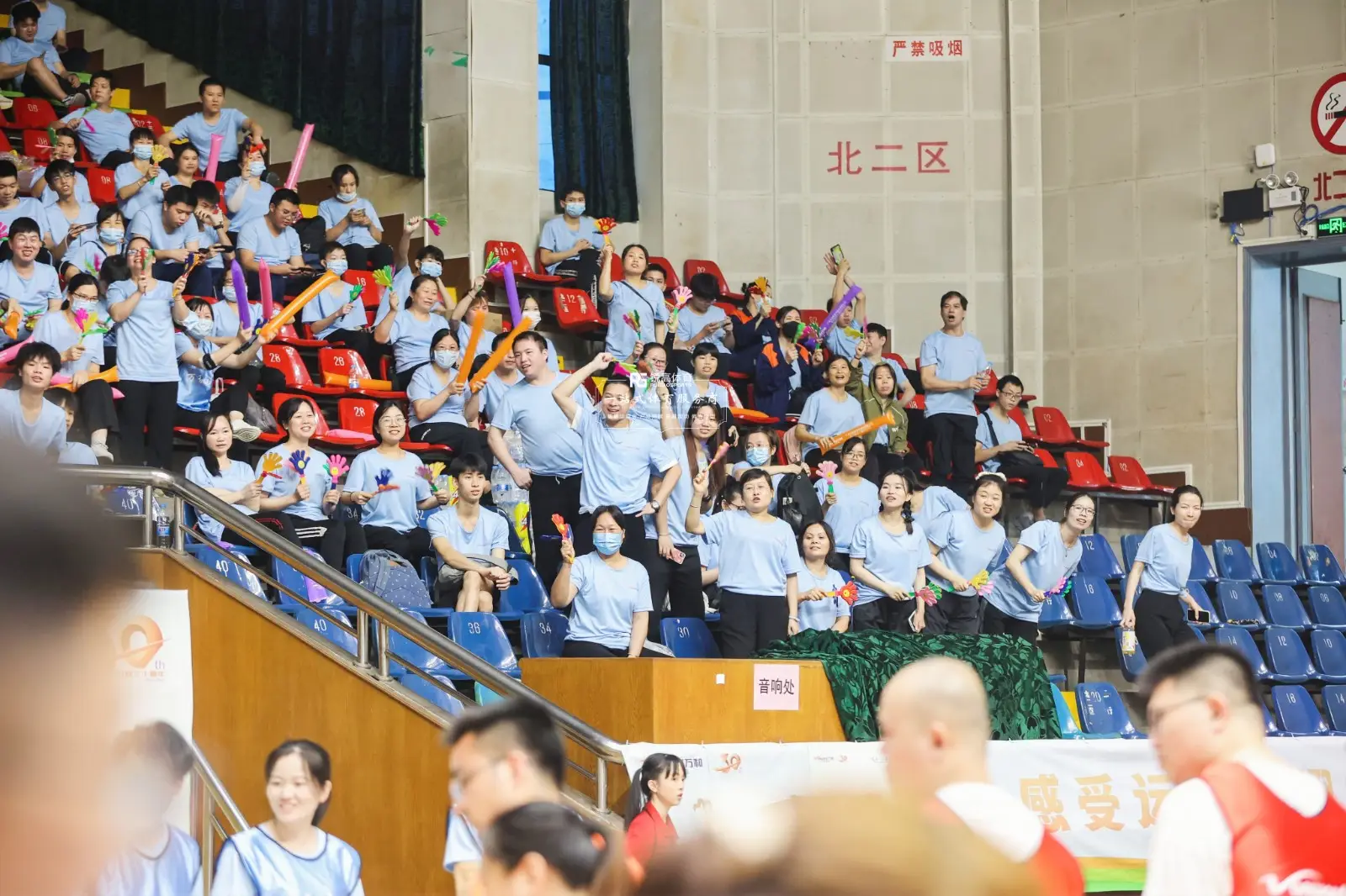 在完成热身运动后,员工分成四个队伍进行了激烈的比拼,各个运动健儿都在运动会中拼搏奋进,勇创佳绩,迸发出的活力与激情点燃了全场,观众席上的呐喊助威也为运动员提神鼓劲不少。